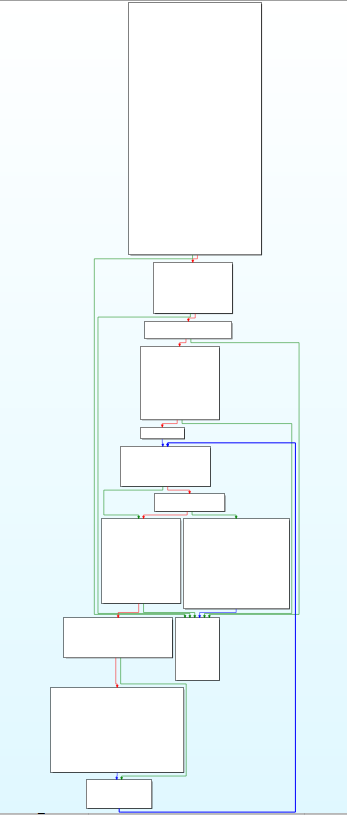 The graph of this subroutine (picture on the left) looks much more complicated than the main function, which is the final reason I needed to convince myself not to analyse every assembly instruction (as motivated as I am to learn assembly).